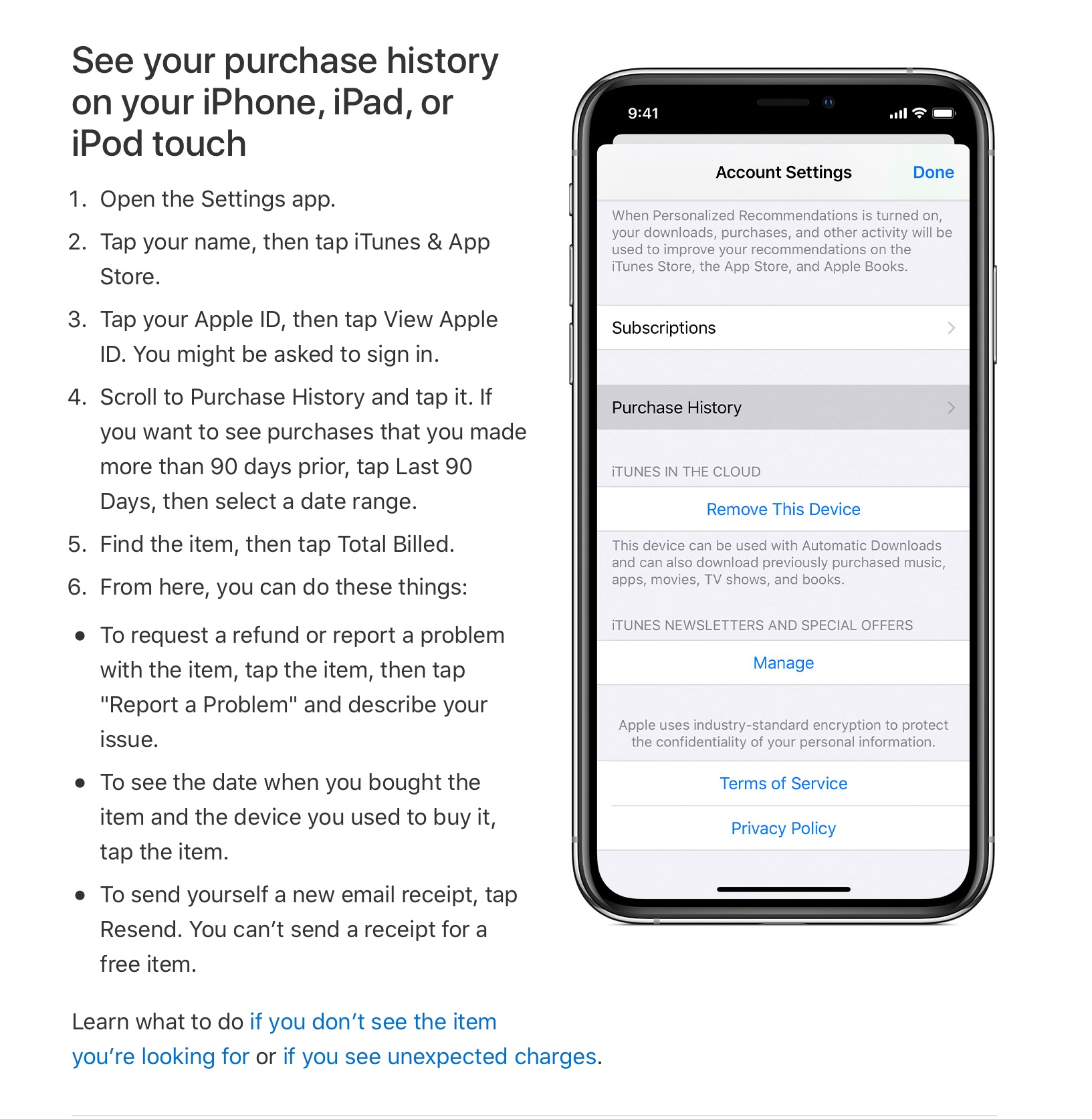 app store purchase history not showing